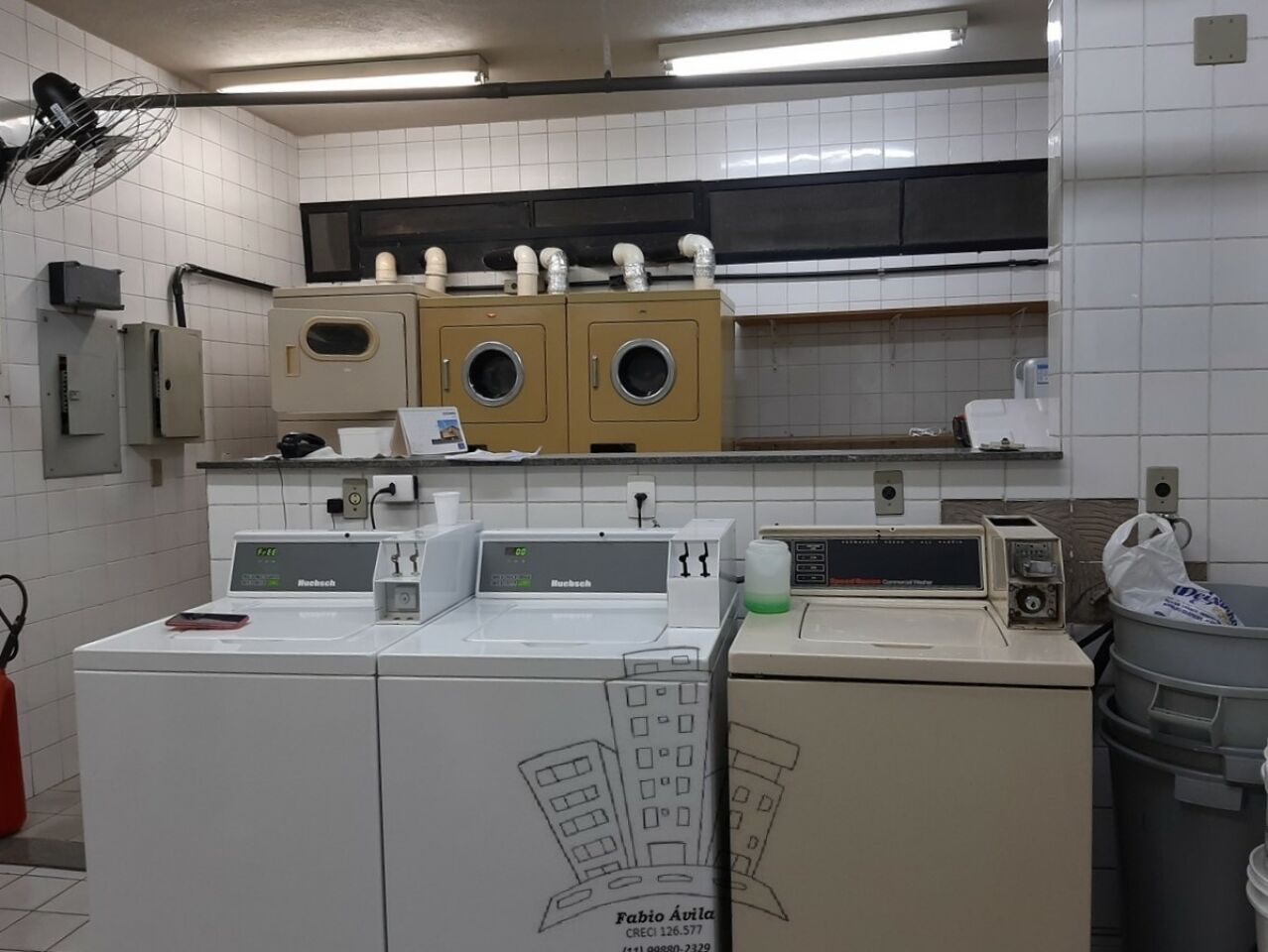 Localizado em um condomínio equipado com piscina. sauna, sl. de ginástica, lavanderia que lava e seca 14 kgs de roupas por semana e portaria 24 horas.